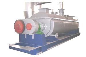 空心桨叶干燥机是一种以热传导为主的卧式搅拌型干燥机。因内部空心的搅拌叶片形似于船桨,固称之为空心桨叶干燥机。桨叶干燥机国外已经开发多年,这种机型在国外已开发出双轴和四轴两种结构、多个规格的系列产品。桨叶干燥机最早由德国开发成功,之后日本引进了该项技术,并进行了改进,开发了双轴和四轴两种结构、十多种规格的系列产品。由于该设备干燥时所需热量是依靠热传导间接加热,因此干燥过程只需少量的气体以带走湿分,这就极大地减少了被气体带走的这部分热量的损耗,提高了热量的利用率。