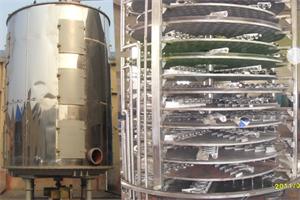 1、空心加热盘是该干燥机的主要部件,其内部通以饱和蒸汽、热水或导热油,作为加热介质。故加热盘实际是一个压力容器。因此,在其内部以一定排列方式焊有折流隔板或短管,一方面增加了加热介质在空心盘内的扰动,提高了传热效果。另一方面增加了空心盘的刚度并提高了其承载能力。每个加热盘上均有热载体的进出口接管。各层加热盘间保持一定距离,水平固定在框架上。