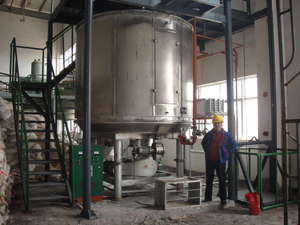 硬脂酸盐干燥机带有耙叶的耙臂作回转运动使耙叶连续的翻抄物料。物料沿指数螺旋线流过干燥盘表面,在小干燥盘上的物料被移送到外缘,并在外缘落到下方的大干燥盘外缘,在大干燥盘上的物料向里移动并从中间落料口落入到下一层小干燥盘中。大小干燥盘上下交替排列,物料得以连续的流过整个干燥器。