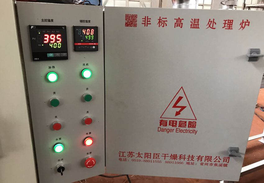江苏太阳臣干燥成立于1994年,专业生产干燥设备,在高温烘箱领域有着独特的技术见解和丰富的工程经验。此次浙江客户慕名而来,我公司按照客户要求定制化设计了非标高温烘箱,使用温度可高达500度,外表温度却仅仅高于室温10度左右,性能卓越。同时设备配备了冷凝装置,和尾气处理装置。客户验收十分满意!