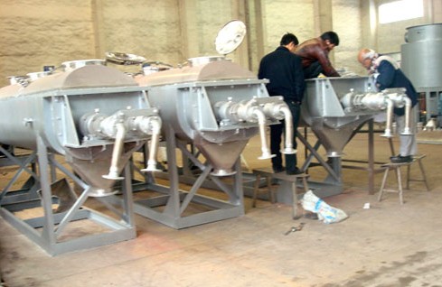 浆叶干燥机已成功地用于食品、化工、石化、染料、工业污泥等领域。设备传热、搅拌的特性使之可以完成以下单元操作:燃烧(低温)、干燥(溶剂回收)加热(融化)、反应。搅拌浆叶同时又是传热面,使单位容积内传热面积增大,缩短了处理时间。楔型浆叶传热面又具有自清洁功能。压缩--膨胀搅拌功能使物料混和均匀。物料沿轴向成"活塞流"运动,在轴向区间内,物料的温度、湿度、混合度梯度很小。用导热油做热介质浆叶干燥机可完成低温燃烧工作。如:二水硫酸钙(Ca2SO4·2H2O) 燃烧转化为半水硫酸钙(Ca2SO4·1/22H2O)。碳酸氢钠(NaHCO3)经煅烧转化为纯碱(Na2HCO3)等。通入介质,如水、盐水等即可用。如:使用于纯碱行业的浆叶式凉碱机,取代老式的空气凉碱机,节省了能源及尾气处理设备,降低了操作费用。干燥,设备主要的功能,不使用热空气,使溶剂回收、能源消耗、环境控制处于易处理的理想状态。对需回收溶剂、易燃易氧化热敏性物料尤为适应。已广泛用于精细化工、石化、染料行业。轴向区间内,温度、湿度、混合度的均匀性,使得设备可用来加热或融化,或进行一些固体物料反应。在复合肥及变性淀粉行业均已成功使用。